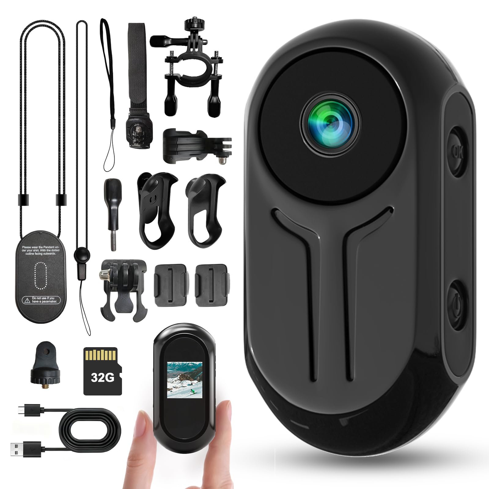 Valentines Thumb Action Camera Body Cam 1080P FHD Wearable Body Cameras with 32GB Card Mini Hands-Free Pov Cameras with Accessories for Gift Ski Sports Motorcycle Horse Riding Vlogging