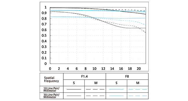 The lens achieves remarkable center sharpness even at its wide-open F1.4 aperture. At F8, it offers near edge-to-edge consistency, delivering uniform sharpness and contrast across the entire frame.