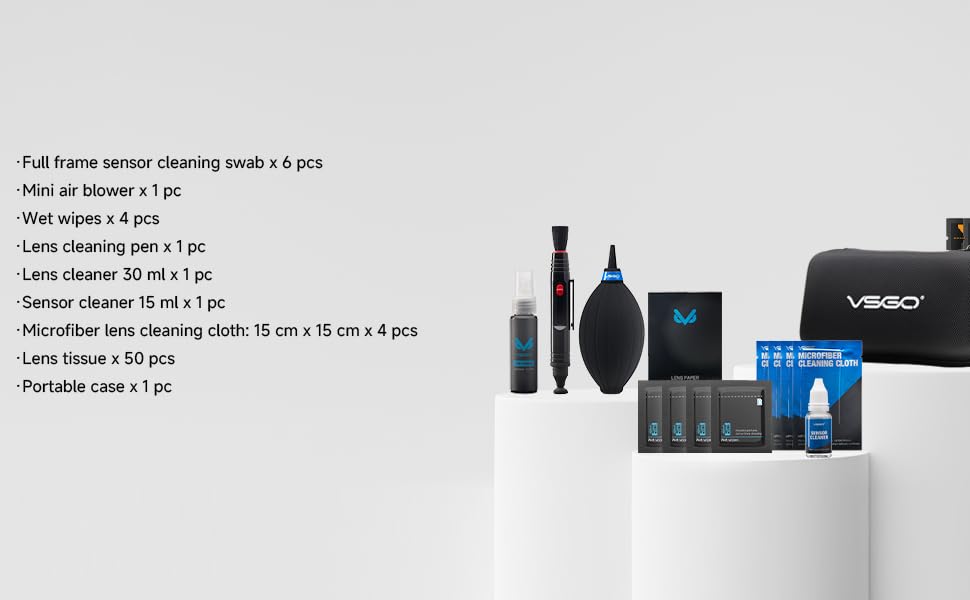 VSGO All-in-One Camera Cleaning Kit for Full Frame Sensor Cameras (24mm) Compatible with Canon, Nikon, Sony, Pentax & DSLR, Includes CMOS Swabs, Lens Pen, Air Blower & More (DKL-20F)