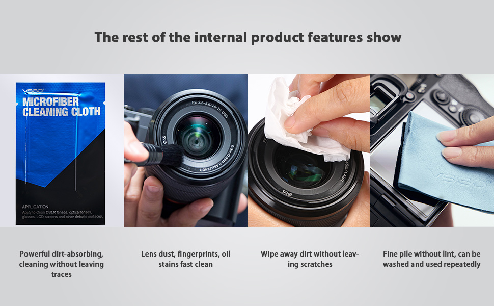 Lens Cleaning Pen – Double-Tip Flexibility: Equipped with a dual-tip design, the lens cleaning pen features an activated carbon powder tip to absorb fingerprints and grease, and a filament brush to clean lens crevices and zoom rings. For best results, use with the included lens cleaner.
