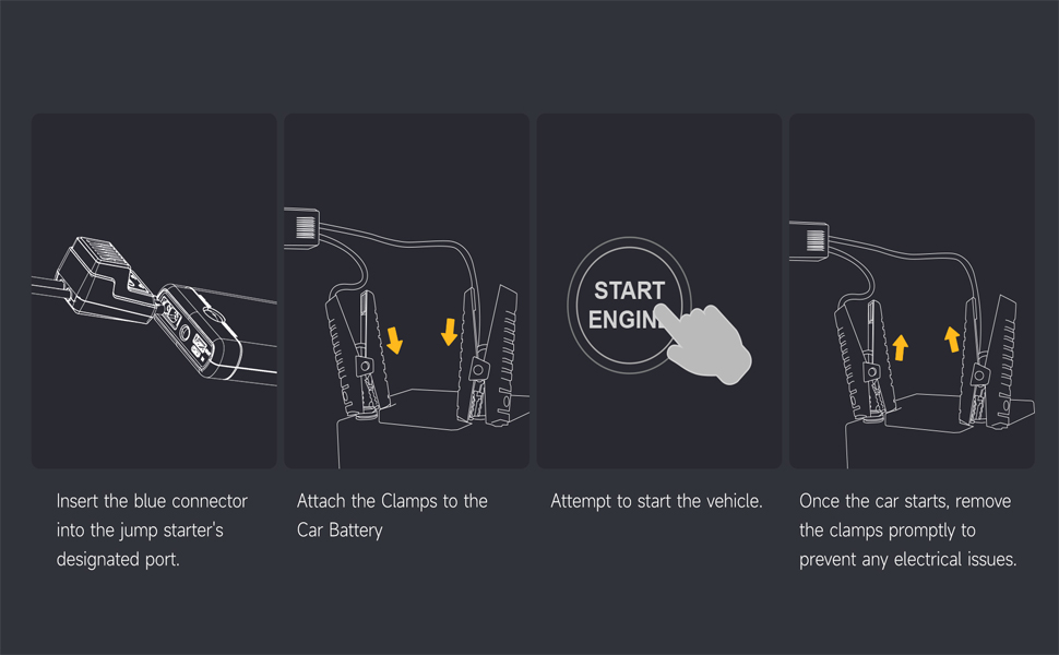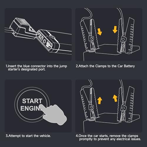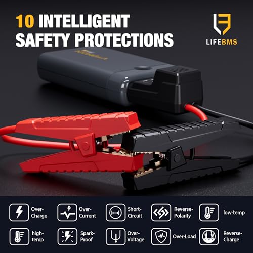 【Safety and Durable Metal Clamps】The VTOMAN V5 heavy duty jump pack incorporates 10 safety protections to prevent misuse and sparking. The included smart cables feature all-metal clamps for enhanced durability, making them as reliable as high-quality jump leads for car, ensuring 100% user safety and long-term reliability.