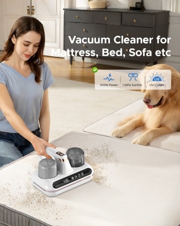 The high-frequency flapping device simulates the traditional flapping action to shake out the mites and their secretions hidden deep in the fabric fibers of mattresses, sofas, and carpets, and then sucks them away instantly with powerful suction to achieve physical removal.