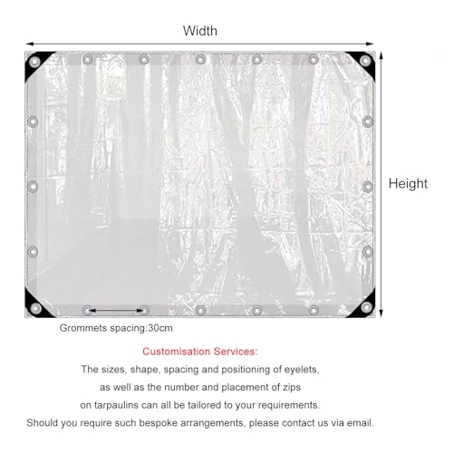 Waterproof Clear Tarp Curtains With Zip,Transparent Tarpaulin Side Panels,0.3mm Pvc Plastic Tarpaulin,With Eyelets,Pergola Gazebo Patio Partition Curtains,Customisable,NOZip-3.5×2.3m(11.5*7.5ft)