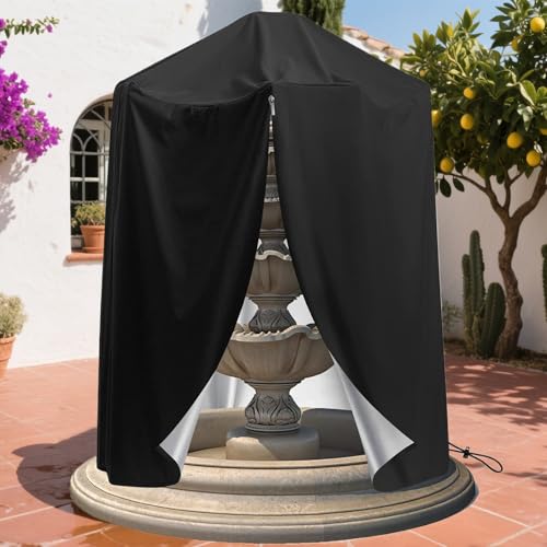 Weatherproof Garden Fountain Statue Protective Cover, Windproof & Secure Fit, 210d Oxford Cloth, Fountain Dust Cover, Winter Garden Waterfall Feature Protector, Easy to Use & Store, for Outdoo