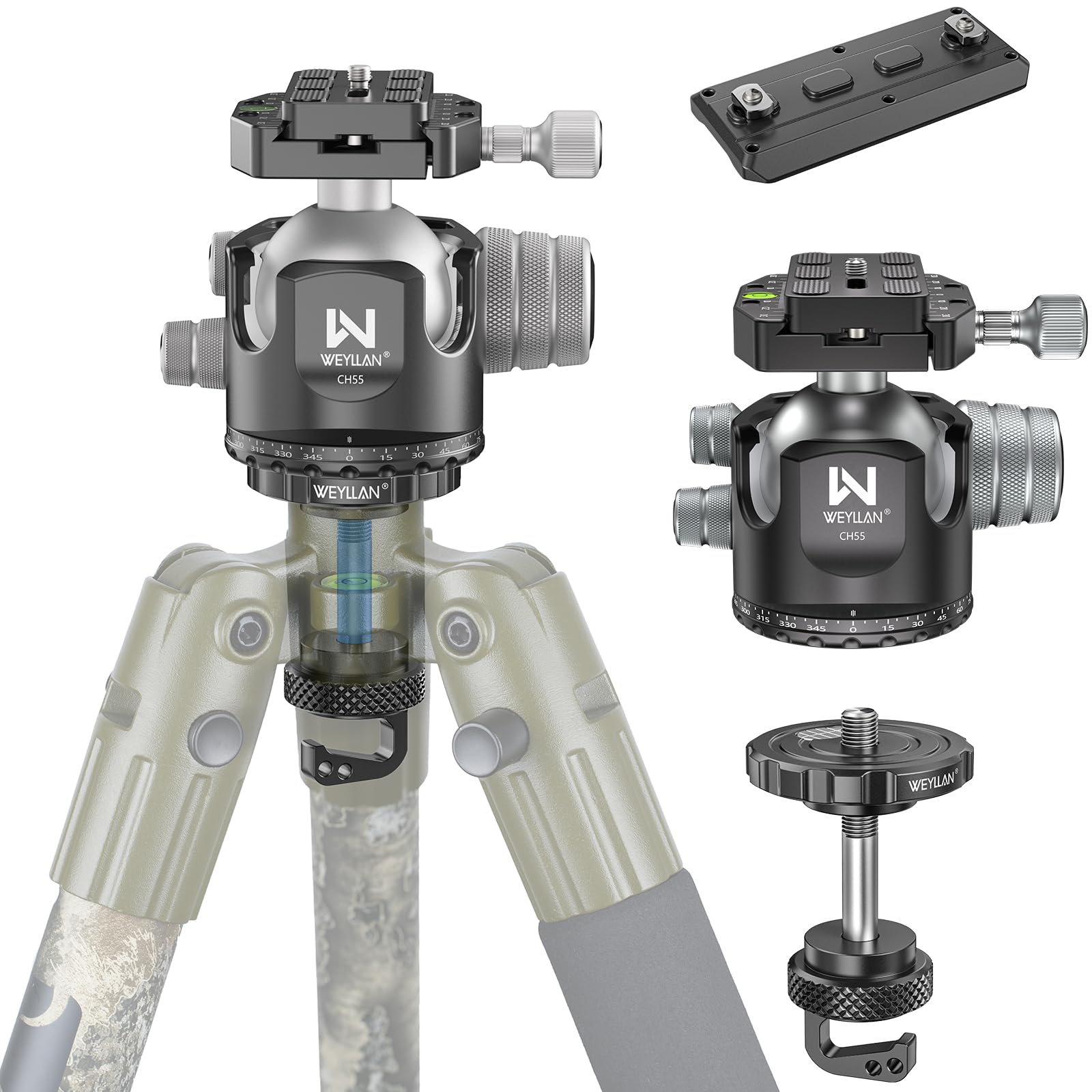 WEYLLAN BA5 & CH55 Ball Head Conversion Kit for BOG DeathGrip Tripod, All Metal Ball Head Converter Adapter and 55mm Low Profile Arca Ball Heads, with MLOK Arca Rail Dovetail Quick Release Plate