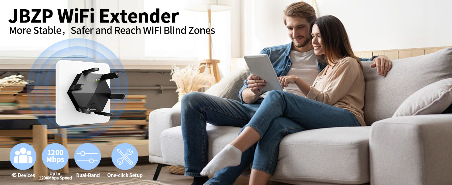 The JBZP Wi-Fi Range Extender connects wirelessly to your exisiting Wi-Fi router to expand itssignal strength to areas never before reached without worrying about low signal zones