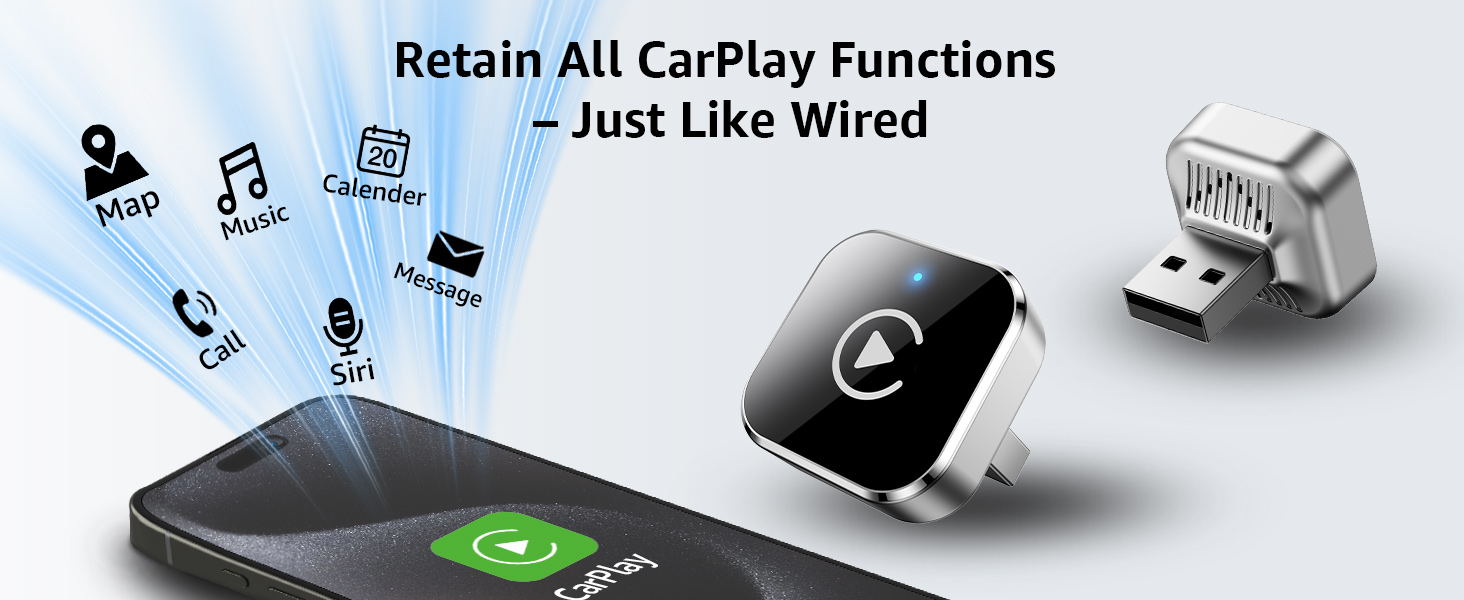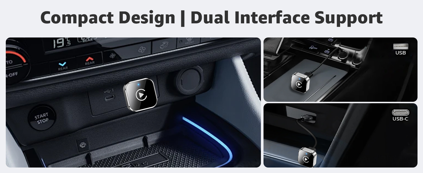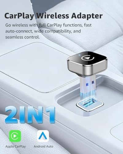 - Dual-Band Super Performance – Featuring a 2.4 GHz + 5 GHz dual-band chipset for 100% improved performance, our adapter ensures maximum stability and near-zero latency. Enjoy lightning-fast, smooth CarPlay/Android Auto performance for seamless music streaming, precise navigation, and clear hands-free calling.