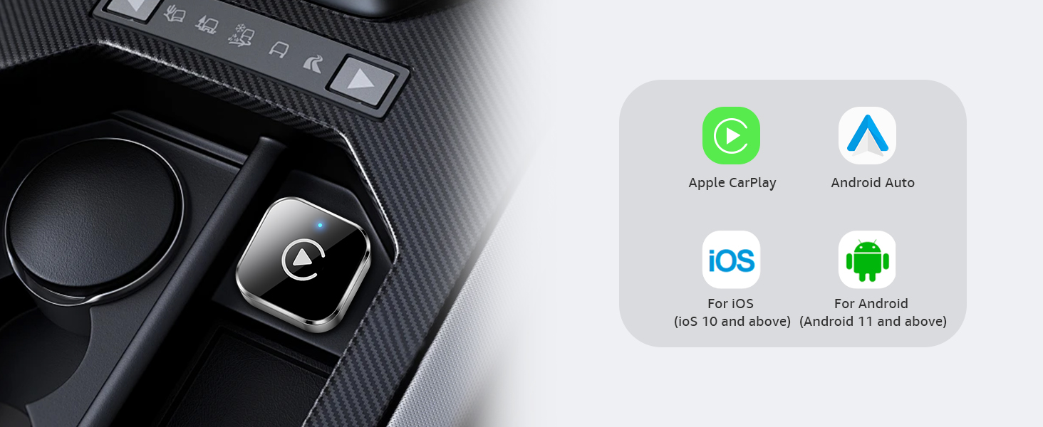 Supports iOS 10+ and Android 11+, delivering reliable CarPlay functionality. Enjoy stable connections, smooth media, and hassle-free in-car use across all compatible devices.