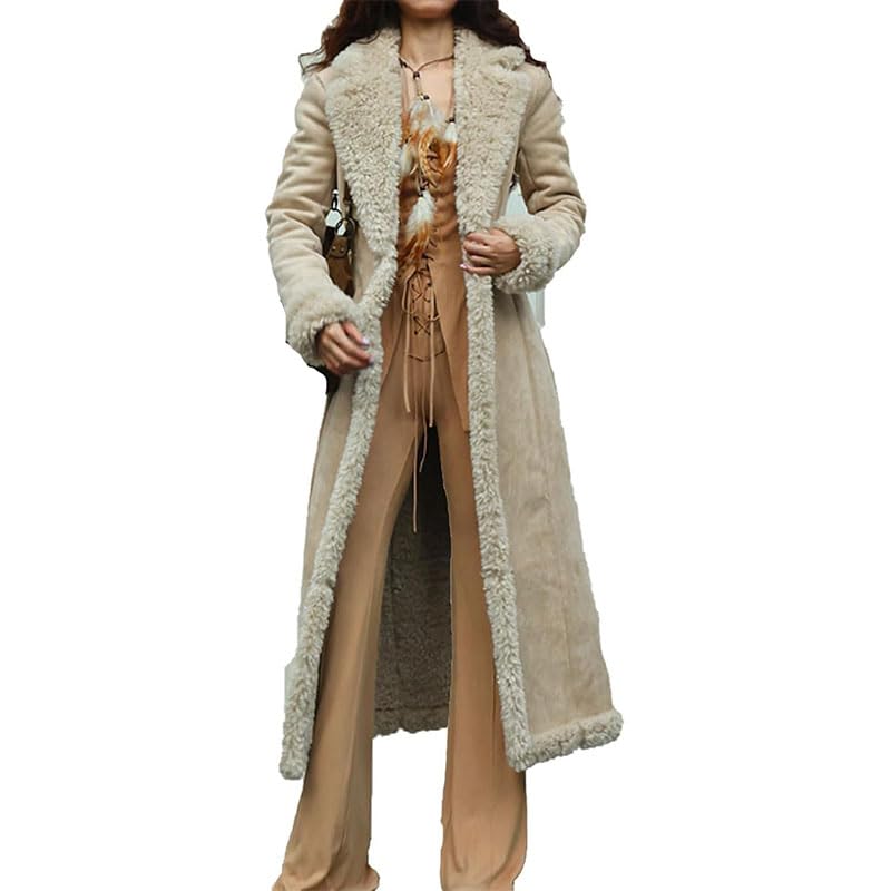 Women's Long Winter Suede Coats,Faux Suede Shearling