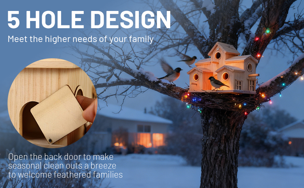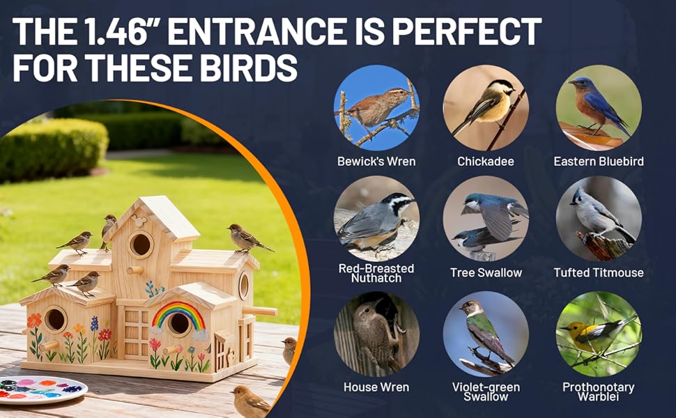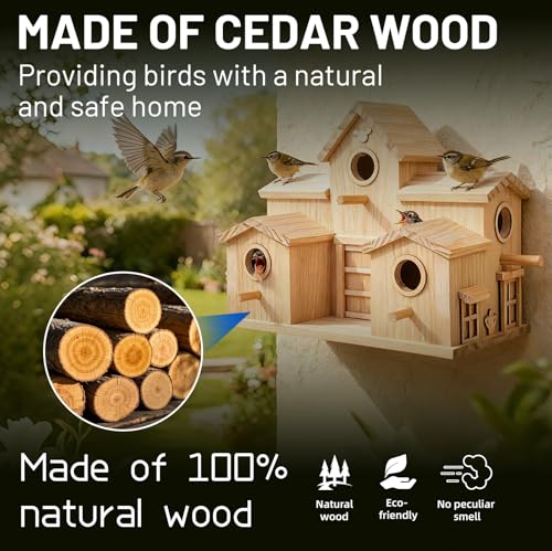 - MULTI-ENTRY DESIGN: Features multiple circular entry holes and perches, providing easy access for various small bird species to nest and rest