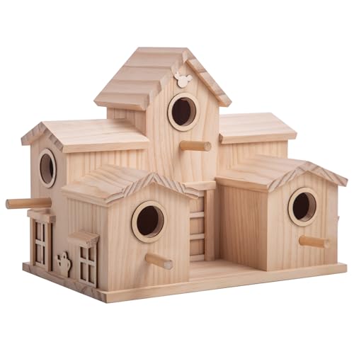 Wooden Birdhouse with Multiple Entry Holes, Natural Pine