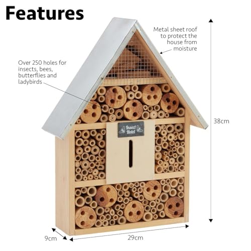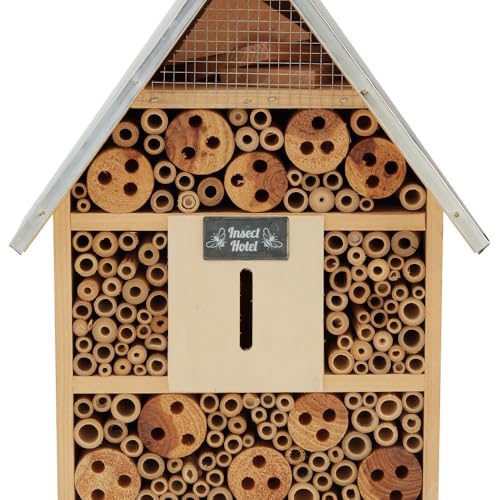 - Features a variety of hollow tubes and compartments to attract diverse insect species.