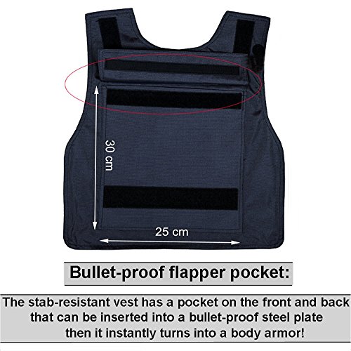 - 【Bullet-proof flapper pocket】The stab-resistant vest has a pocket on the front and back that can be inserted into a bullet-proof steel plate then instantly turns into a body armor!The size of the pocket is 25*30cm