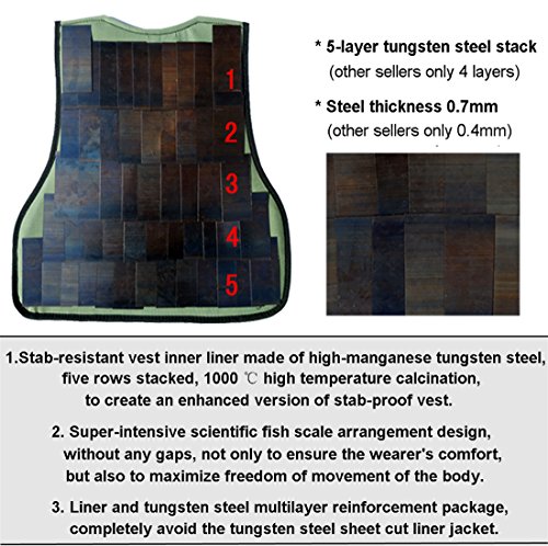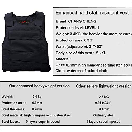 - 【Stab-resistant inner liner】: 2-piece liner net weight: 2.4KG, the heavier the more secure. This heavier version of the stab-resistant vest is safer than other lightweight stab-resistant vest.