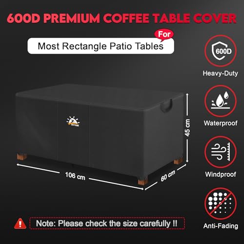 - Premium Coffee Table Cover – Measures 106x60x45cm (LxWxH), Zettum outdoor table and chairs covers are perfectly compatible with most 106×60 small side or patio tables; (Please measure the size of your table set carefully!)