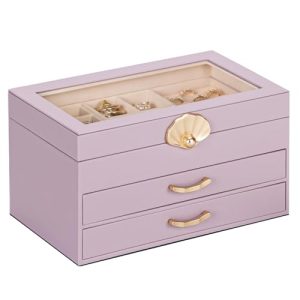 Vlando Jewellery Box with Glass Lid, 4-Tier Jewellery Organiser, Jewellery Storage with 4 Drawers for Watches,Sunglasses, Gift for Women, For Ring, Necklace, Earring, Bracelet(Pink) From the brand Different Layer Jewellery Box Check Offer Price 4 Layer Storgae: A beautiful jewellery box with a lid of synthetic leather and glass is durable, stylish packaging in which the transparent face has not only an aesthetic purpose. This helps to keep your beautiful pieces from getting dusty and general wear well last you for many years. But on the other hand, you can easily find that ideal piece in one go. Upgrade your...