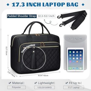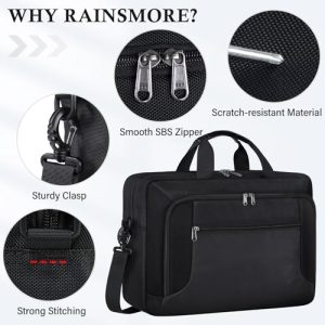 RAINSMORE 17.3-16 Inch Laptop Bag Briefcase Water-repellent Work Laptop Bags for Men Large Laptop Messenger Shoulder Computer Bag for Travel Office Document Teacher Black Check Offer Price Durable & Excellent Quality: Our laptop bags are crafted from high-quality polyester fabric and metal fittings, providing you with confidence in its durability. Sturdy and robust fittings are essential!!! (including zippers and clasps) We use premium metalworks, ensuring these briefcases long lasting for years. Rommy & Convenient Design: This computer bag measures 17.5" x4.7" x12.6"(44.5 x 12 x 32 CM), perfect for carrying all your essentials.1. Sturdy Handles: Ergonomically designed leather-wrapped handles provide...