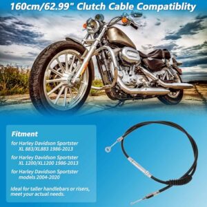 160cm/62.99″ Clutch Cable for Harley Davidson Sportster XL883 XL1200 XL 883 1200 1986-2013 for Harley Sportster Models 2004-2020 Motorcycle Extended Clutch Cable Stainless Steel Fitment of Clutch Cable for Harley Davidson Sportster XL 883/XL883 1986-2013 for Harley Davidson Sportster XL 1200/XL1200 1986-2013 for Harley Davidson Sportster models 2004-2020 This clutch cable is ideal for taller handlebars or risers, meet your actual needs. Installation Remove the Old Cable, Loosen the Lever End and Engine End, Remove and Route Out. Install the New Cable, follow the old route, connect the the Lever End and Engine End. Adjust the Clutch Cable Properly and...