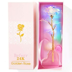 Mothers Day Rose Gifts for Mum from Daughter Son Birthday Gifts for Women Galaxy Colorful Rose Enchanted Rainbow LED Flower Gift with Heart Base Best Presents For Mum Her Wife Girl Grandma Anniversary Check Offer Price High Quality Materials: The petals and leaves of Beferr artificial rose flowers are made of high quality plastic,The flower stem is made of polyethylene, treated with a special process and plated with high-purity gold foil. Attention: This is a plastic rose, not made of metal. The stems of the rose are plated with thin gold foil. Exquisite Craftsmanship: Every Beferr forever rose is carefully...