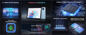 DOOGEE Tab A9 Pro+ Android 16 Tablet 11 inch, 30GB RAM+128GB ROM/2TB, Octa Core Tablets with 90Hz HD Display, 8580mAh Android Tablets, 5G WiFi, Widevine L1, Dual Speaker & Face Unlock – BLACK DOOGEE TABA9PRO+ Android 16 Tablets give you a different experience. 1 Latest Android 16 OS PC 2 Gemini AI 3 Gemini Live 4 Big Screen Tablet 5 Fortified Privacy 1 8580mAh Battery 2 30GB RAM+128GB ROM 3 T7200 Octa-core 4 Discover More 5 Faster 1 13MP Main Camera 2 5MP Front Camera 3 GOOGLE Camera 4 Anti-Flicker 5 Beauty Mode 1 Dual Speaker 2 Face ID 3...